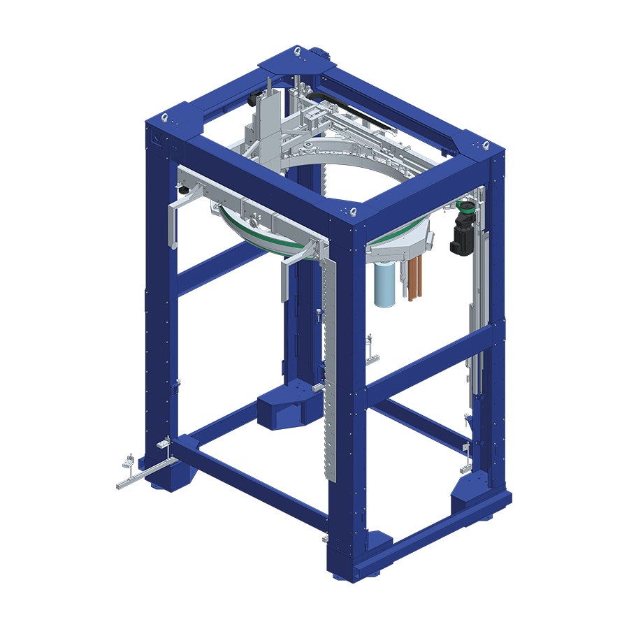 No welding but an exclusive & patented film clamping, cutting and fixing unit, using the so called “tuck under” principle, where the film end is securely pulled underneath the previous film wrap. This avoids any risk of having the film getting unwrapped due to a hazardous brushing or welding and guarantees a perfect finishing without loose hanging film tails, independently of the quality of the film, the pallet dimensions, the load configuration or the pallet positioning.